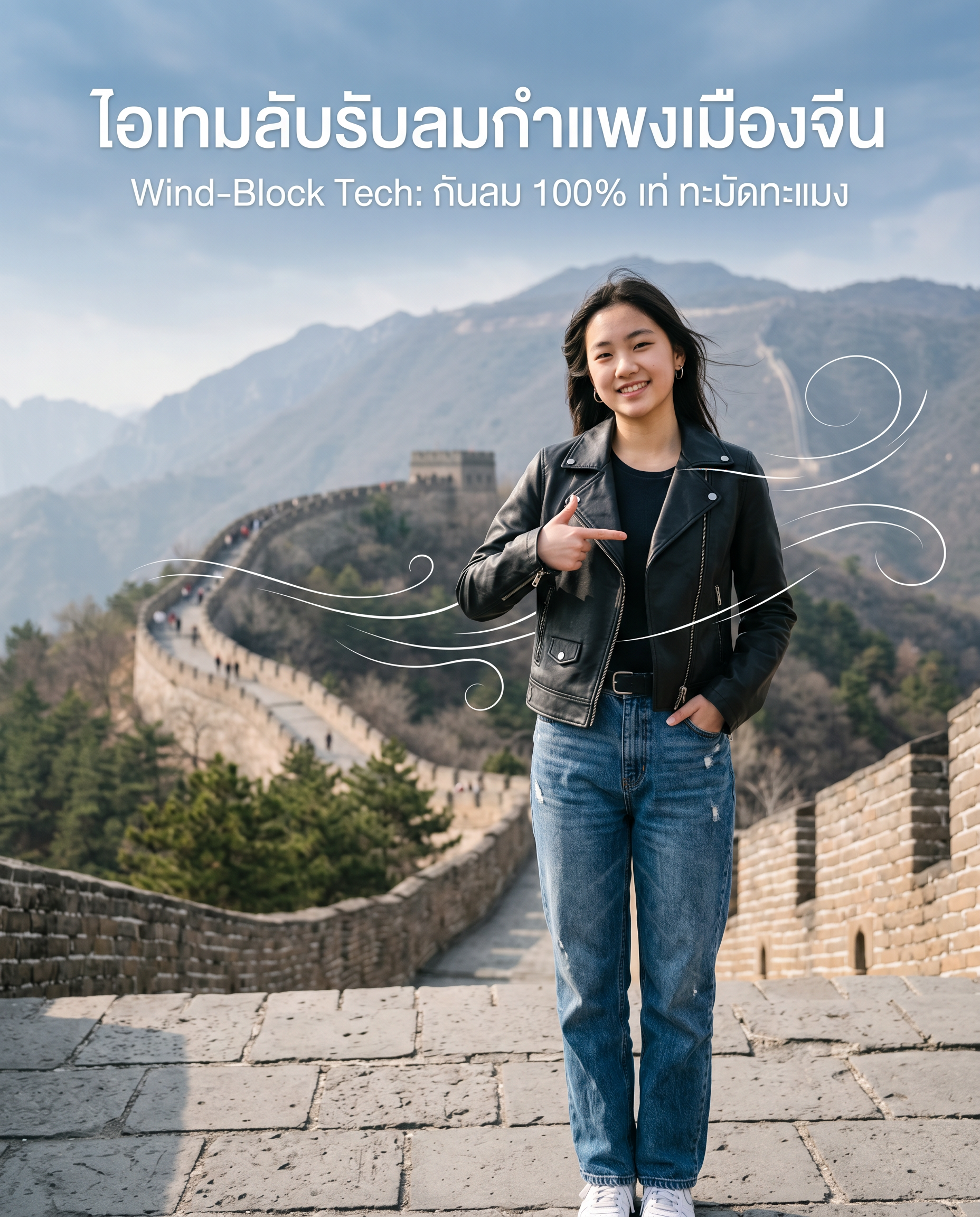 ทริคฉบับ GO Mall: ไฮไลต์ทริปปักกิ่งคือการไปปีนกำแพงเมืองจีนด่านมู่เถียนยวี่ (Mutianyu) แต่ขอเตือนว่าลมข้างบนนั้นตบหน้าชาเอาเรื่อง! ไอเทมลับที่บล็อกเกอร์สายแฟชั่นเลือกใช้คือ “แจ็คเก็ตหนัง (Leather Jacket)” เพราะบล็อกลมได้สนิทดีกว่าเสื้อไหมพรม แถมพอใส่ถ่ายรูปตัดกับสีกำแพงอิฐเก่าๆ คือเท่ตะโกน ได้ลุค City Girl ที่ดูแพงมาก (ใครยังไม่มีแจ็คเก็ตหนังทรงสวยๆ แวะมาลองฟิตติ้งที่ GO Mall ก่อนบินได้เลยครับ เช่าเอาคุ้มกว่า ไม่ต้องซื้อใหม่ให้เจ็บตัว)