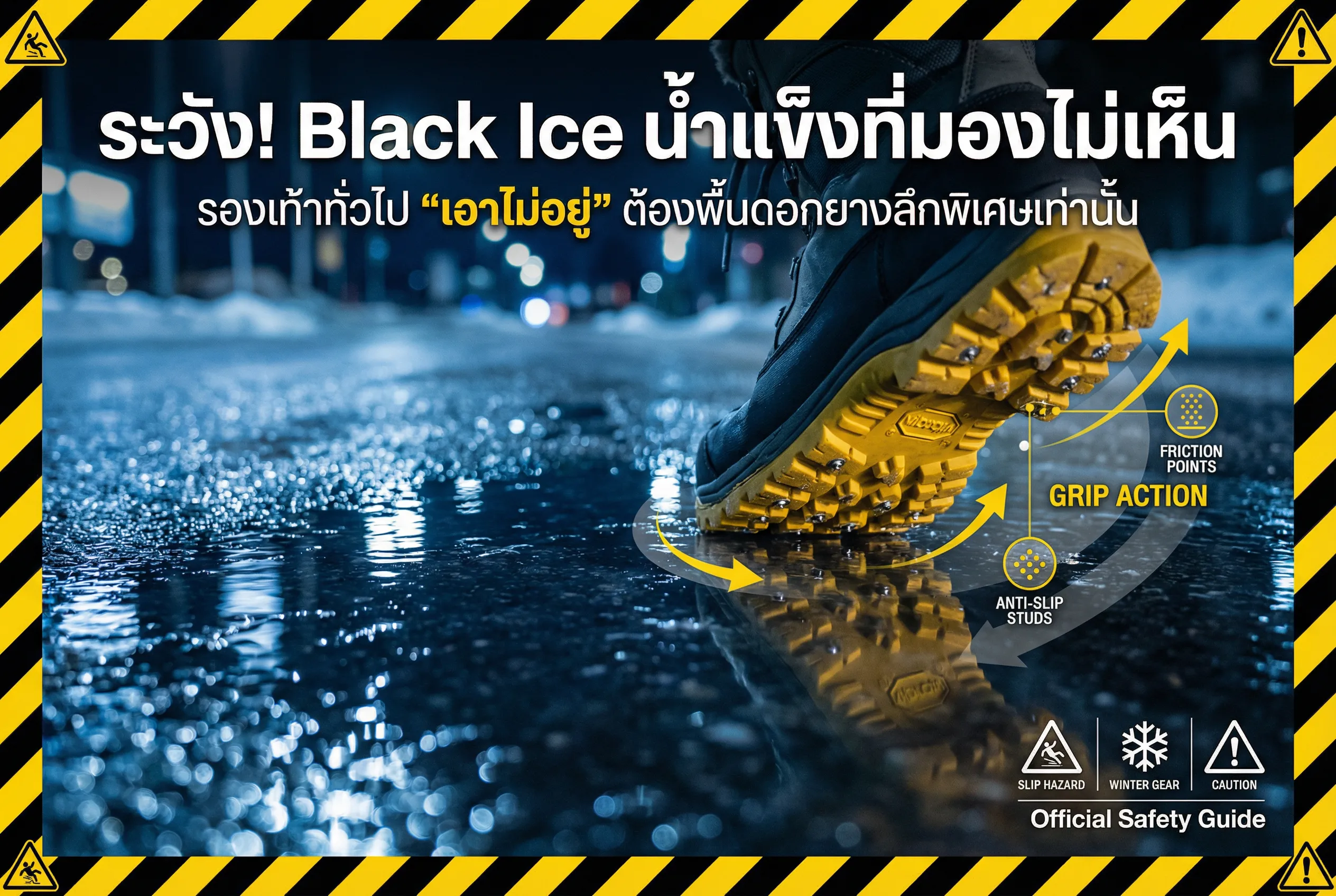 - พื้นเรียบเกินไป เสี่ยงลื่น : พื้นรองเท้าแฟชั่นส่วนใหญ่ไม่มีดอกยาง พอเจอพื้นน้ำแข็ง (Black Ice) คือล้มก้นกระแทกแน่นอน