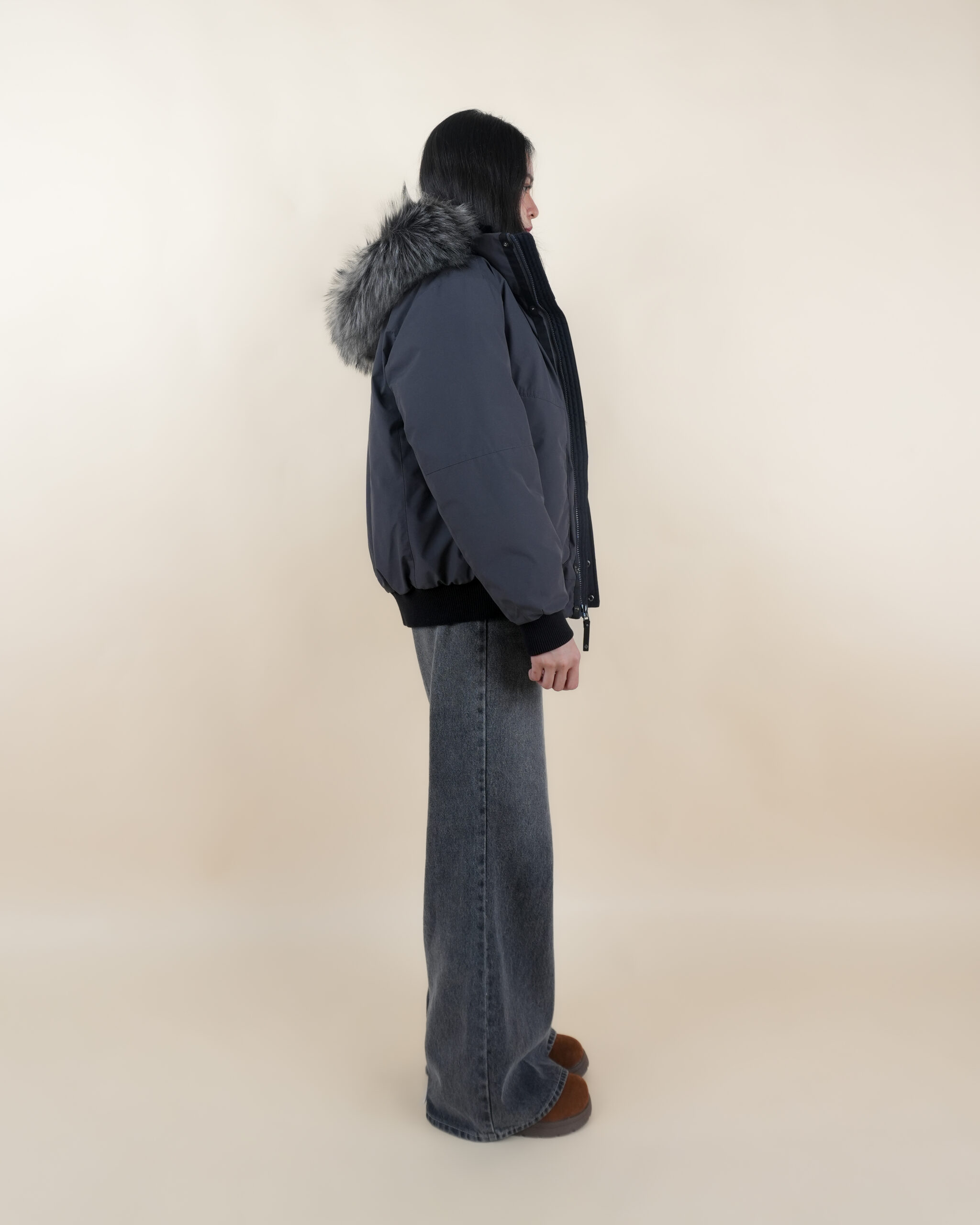 เสื้อโค้ทสีดำมีฮู้ด