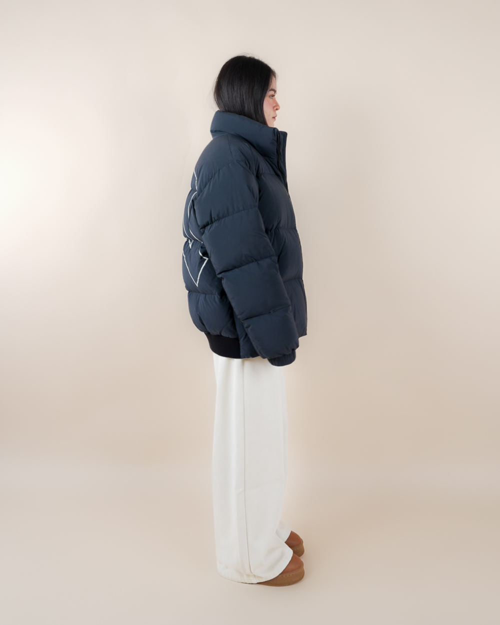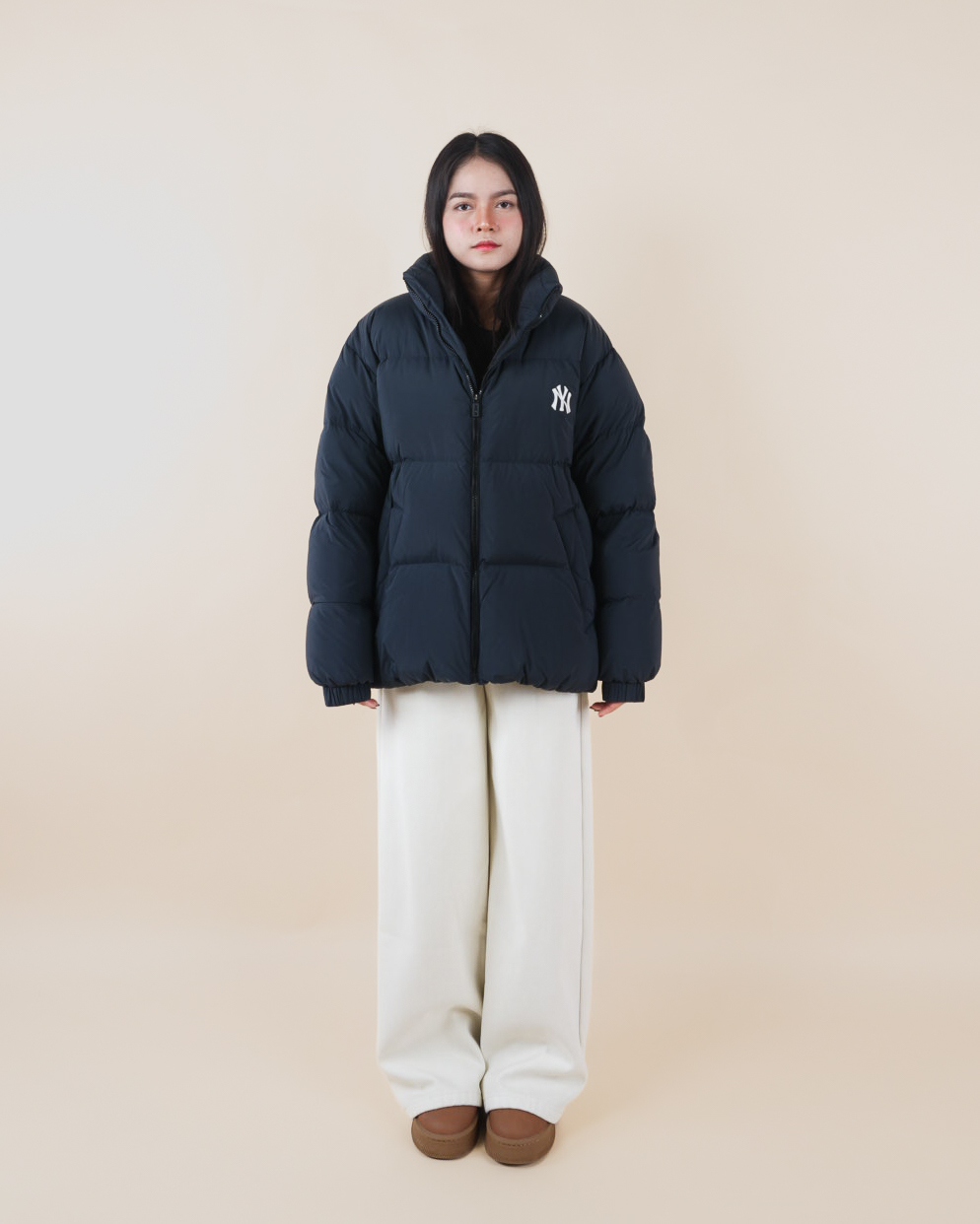 ML เสื้อขนเป็ดสีดำลายโลโก้แบรนด์ฮู้ด
