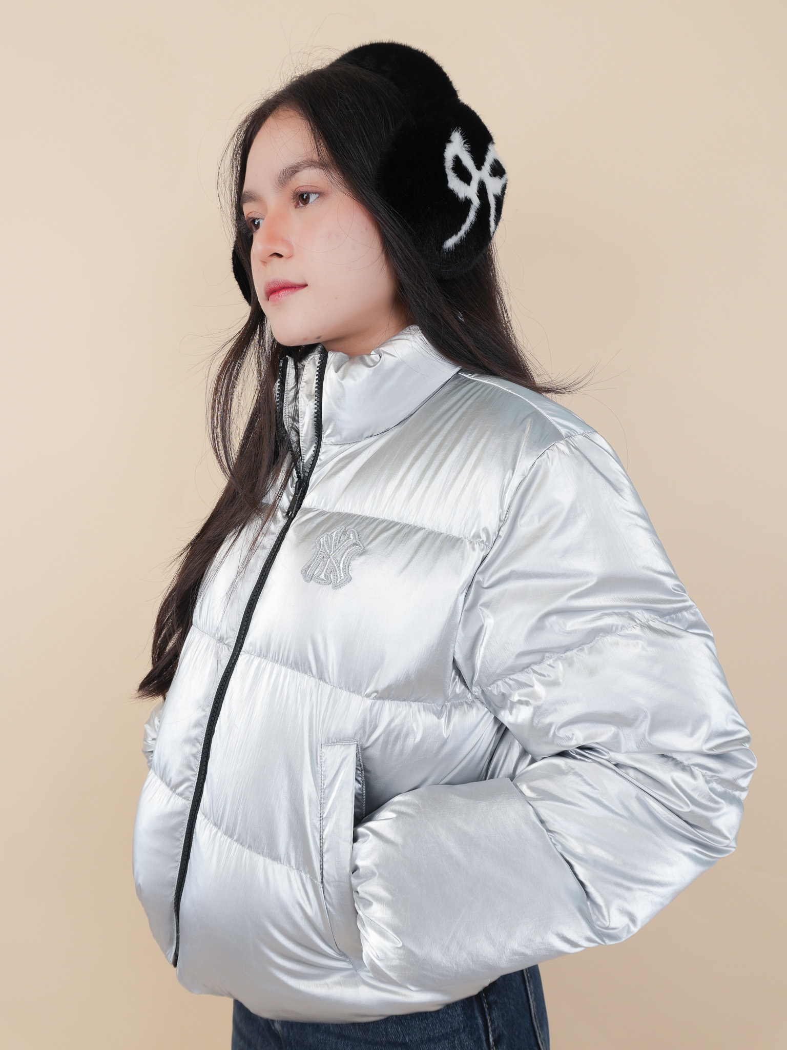 ML เสื้อขนเป็ดครอปสีเงินเมทาลิค