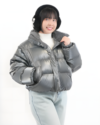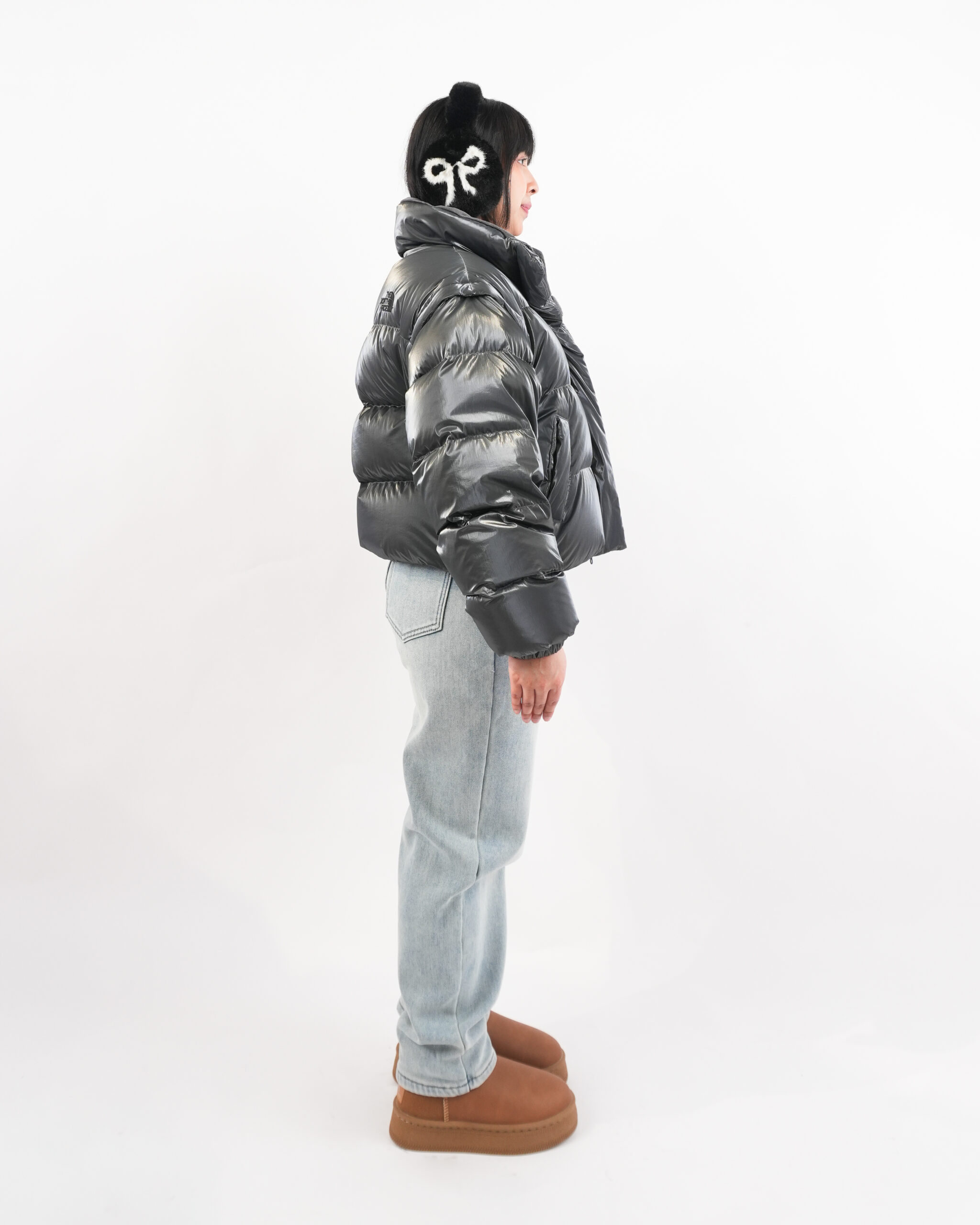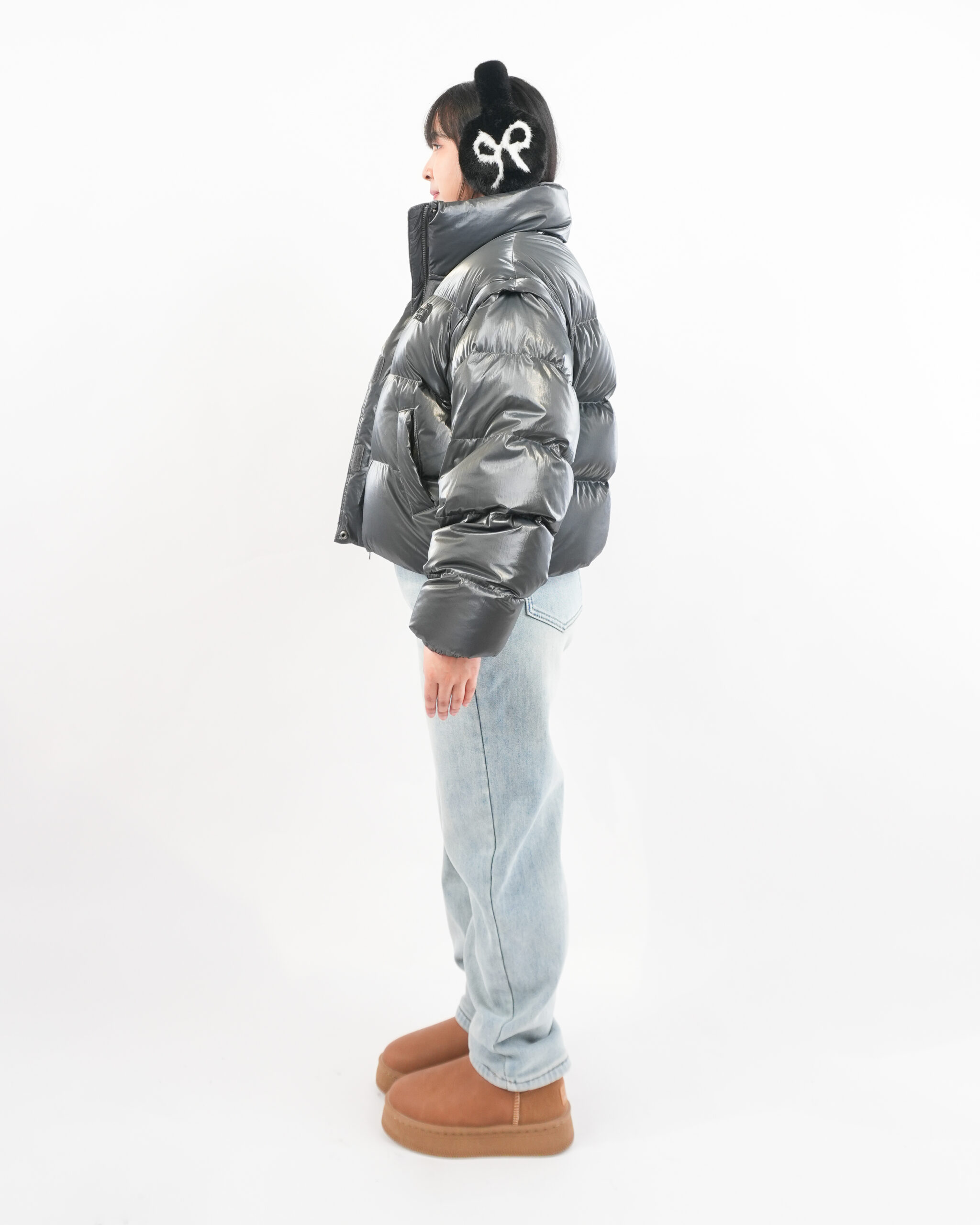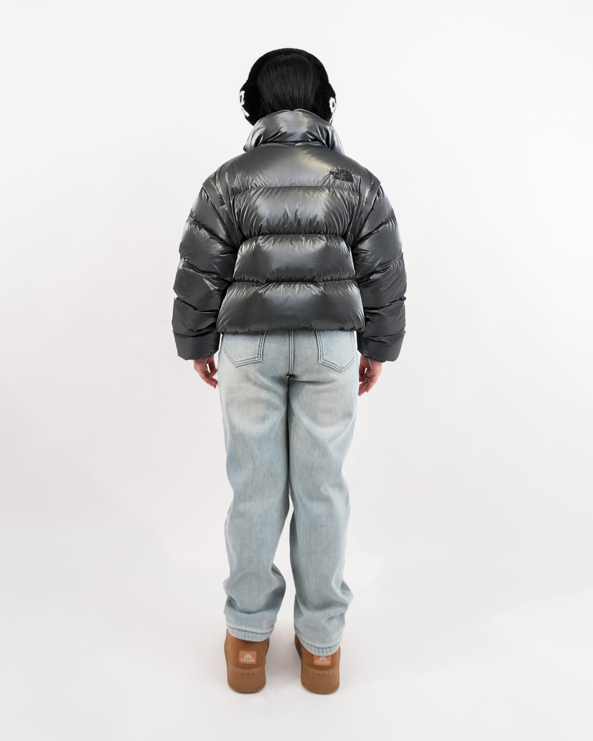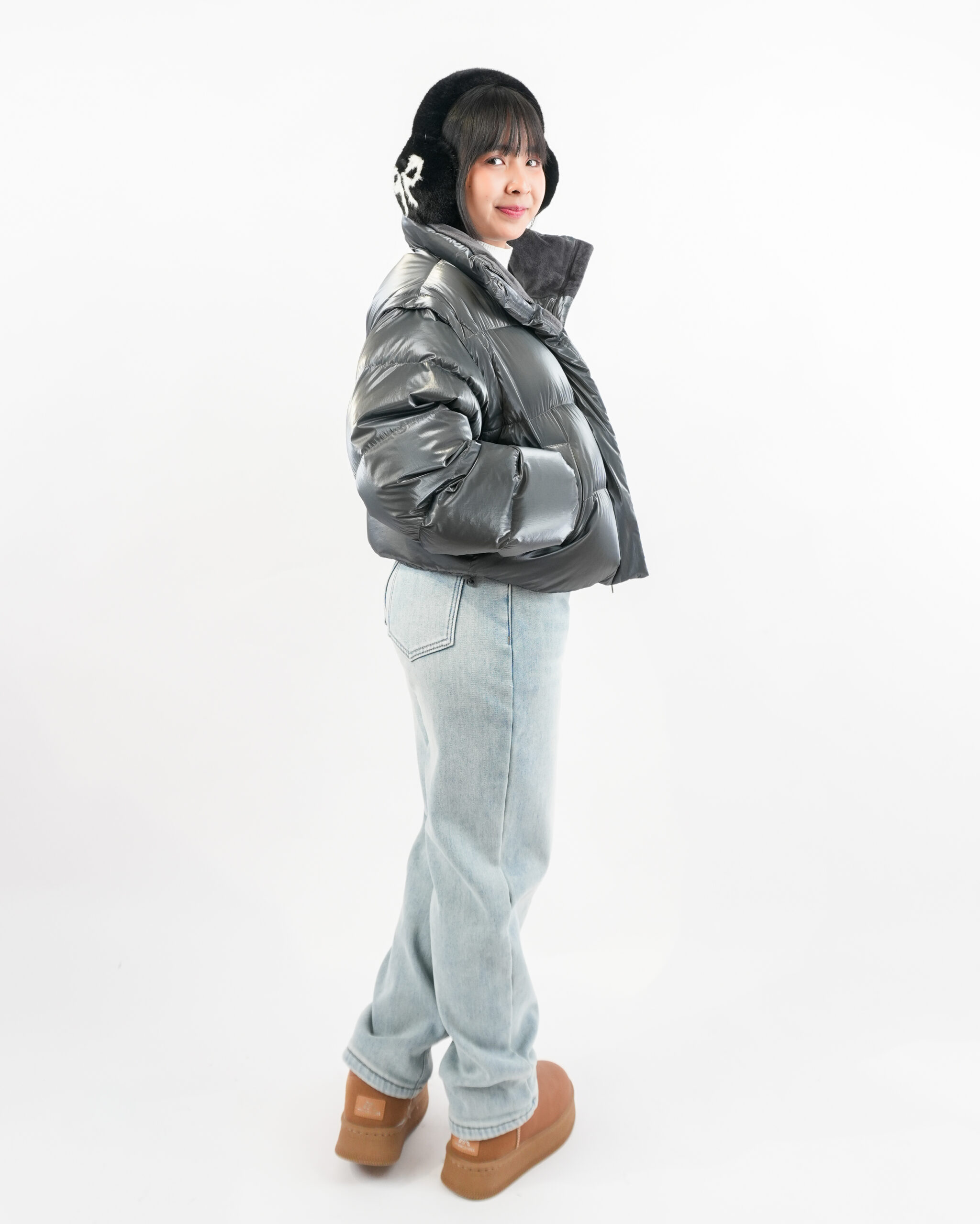 NF เสื้อขนเป็ดสีเทาทรงครอป เอวปรับรูดได้ถอดเป็นเสื้อกั๊กได้