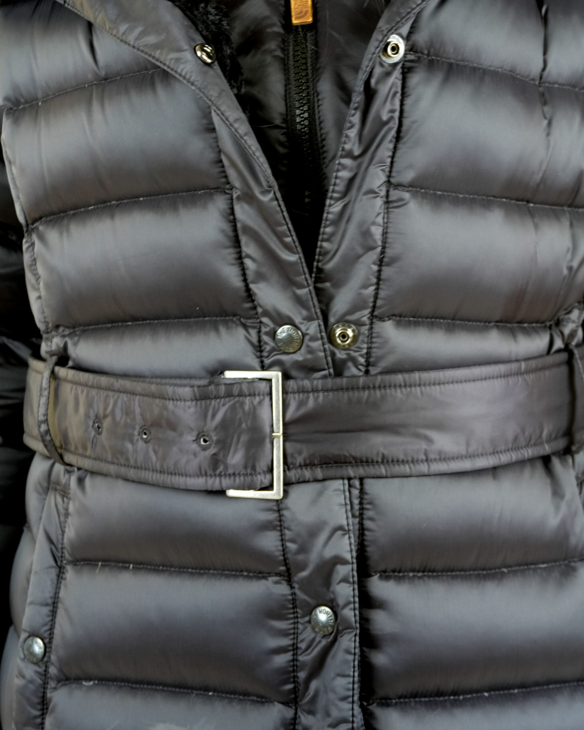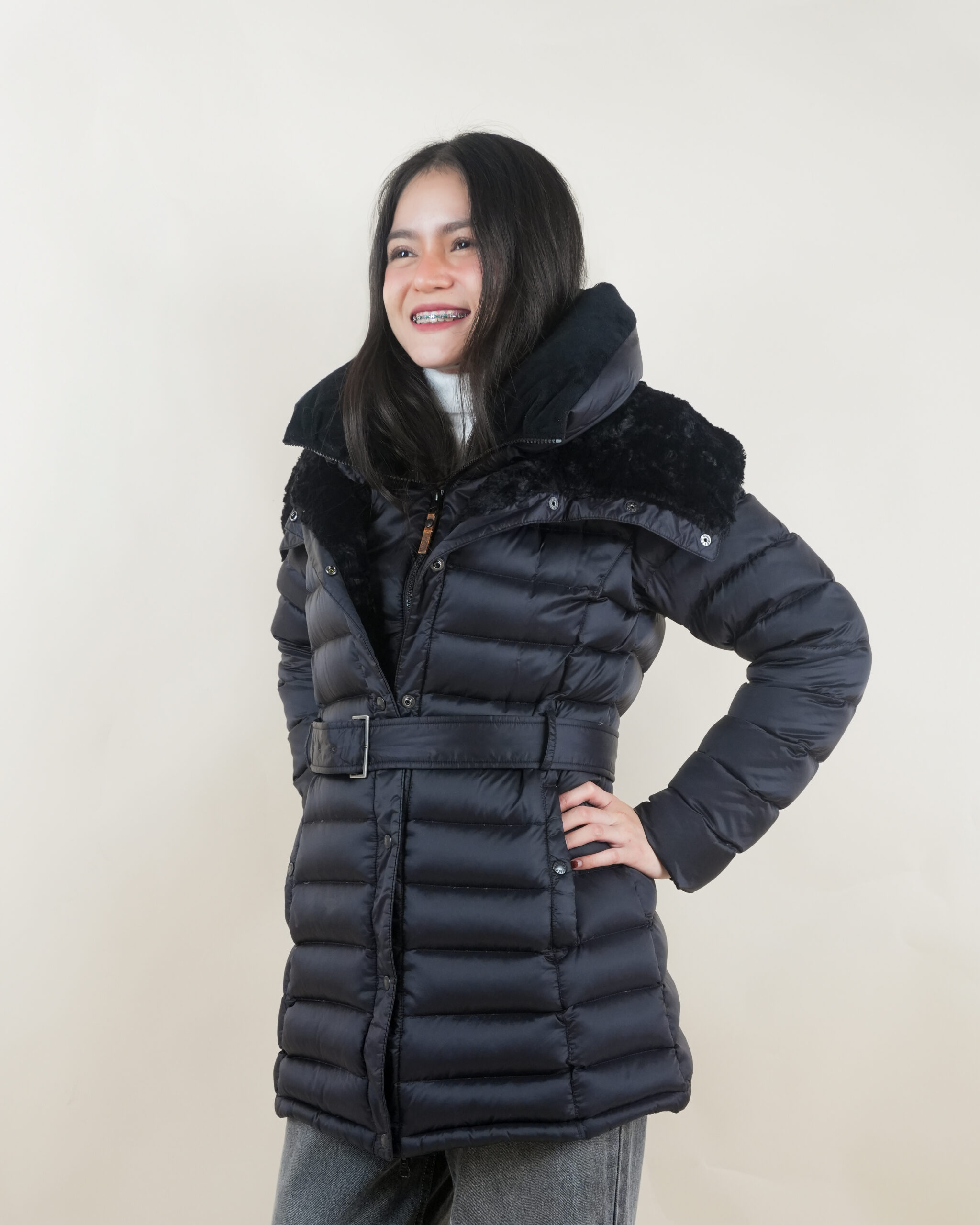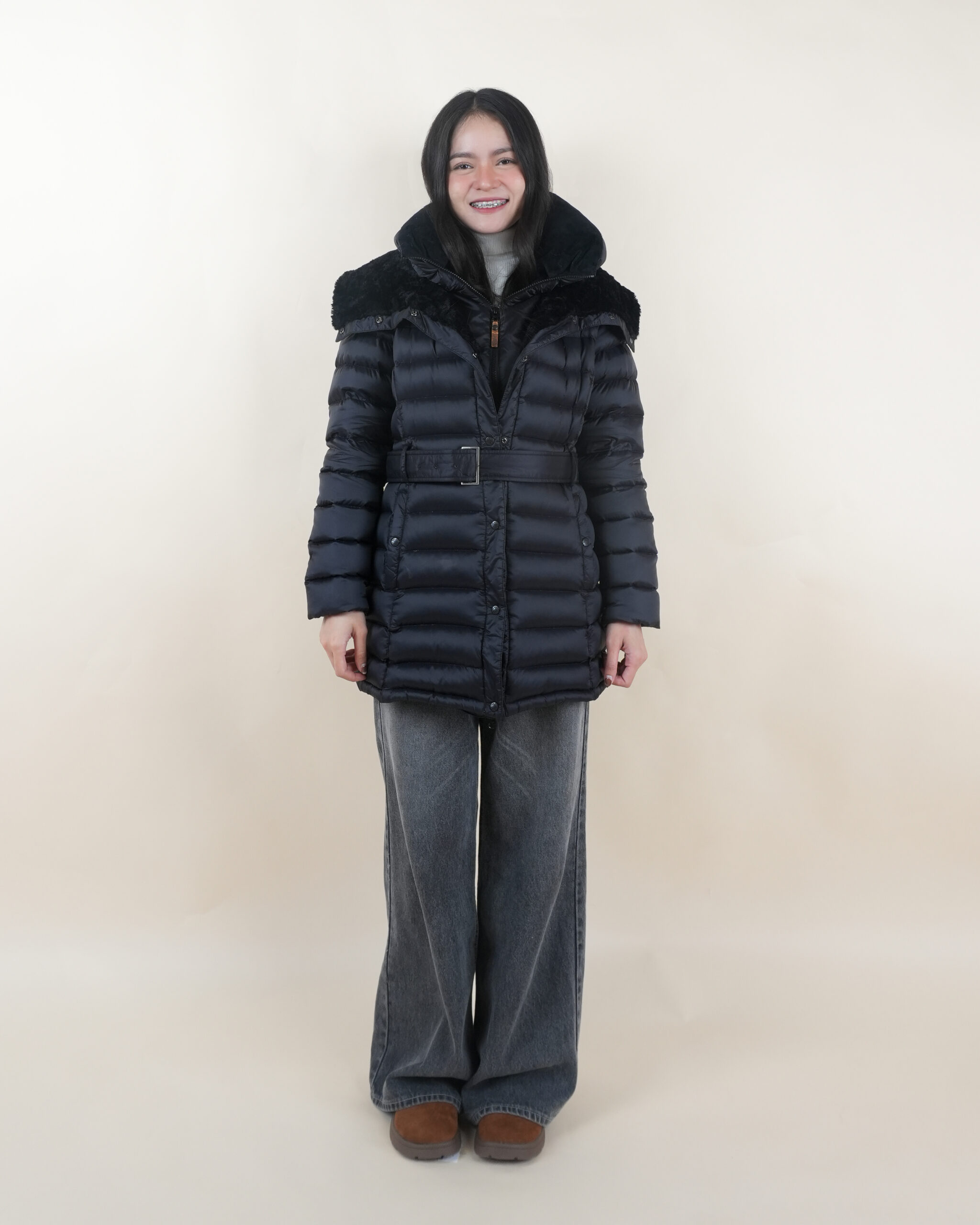 NF เสื้อขนห่านสีดำตัวยาวบุขน+เข็มขัด DOWN 700
