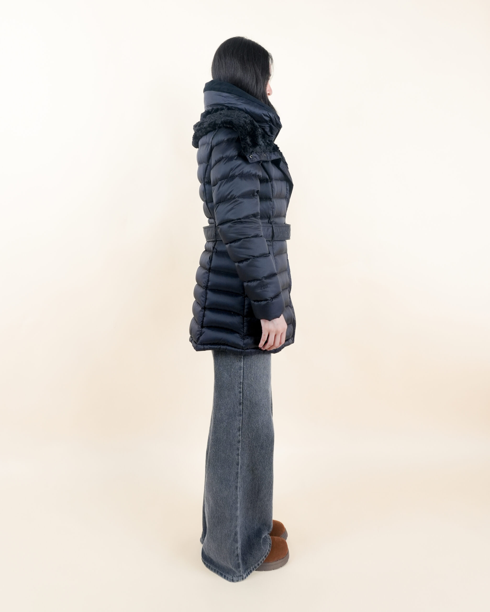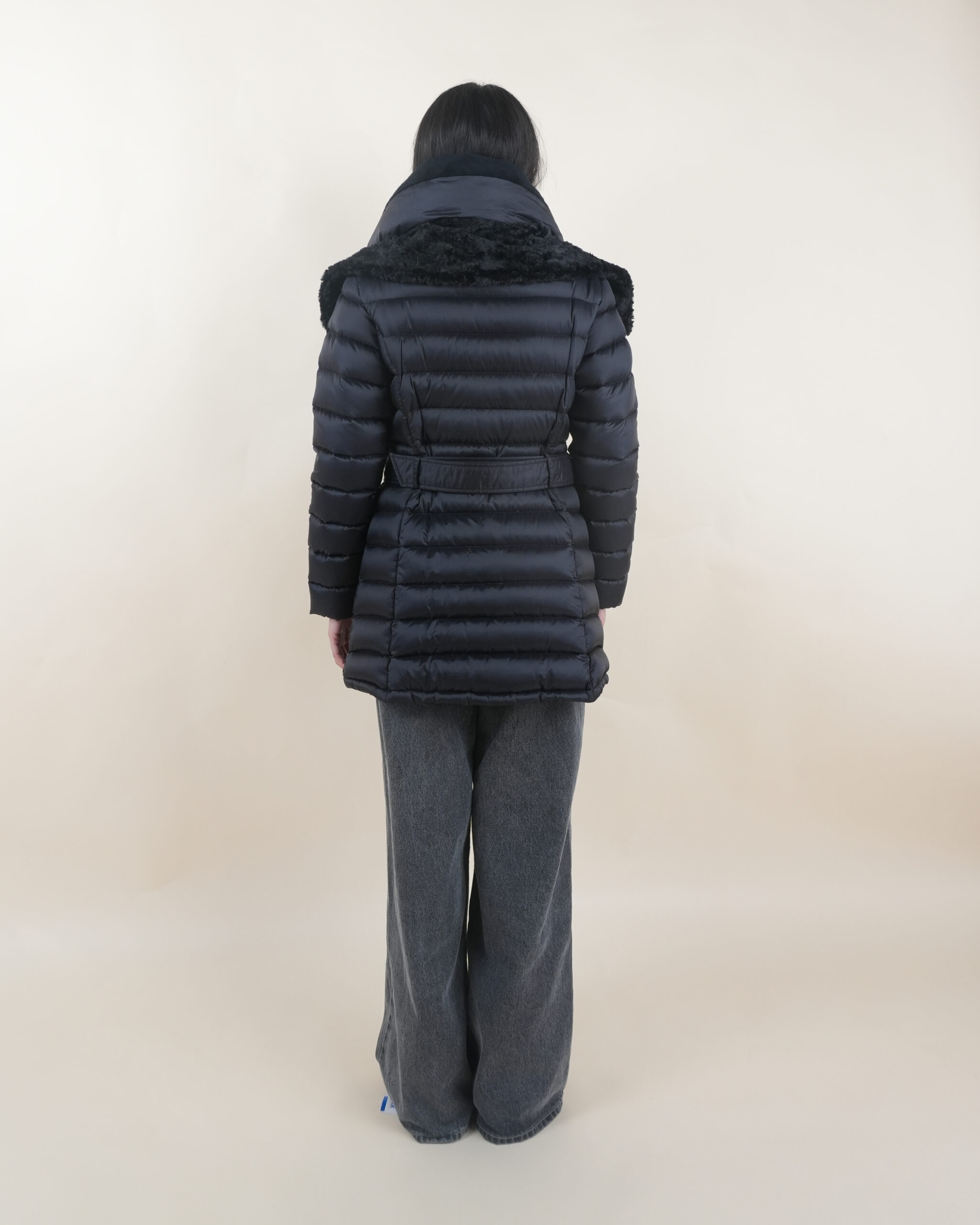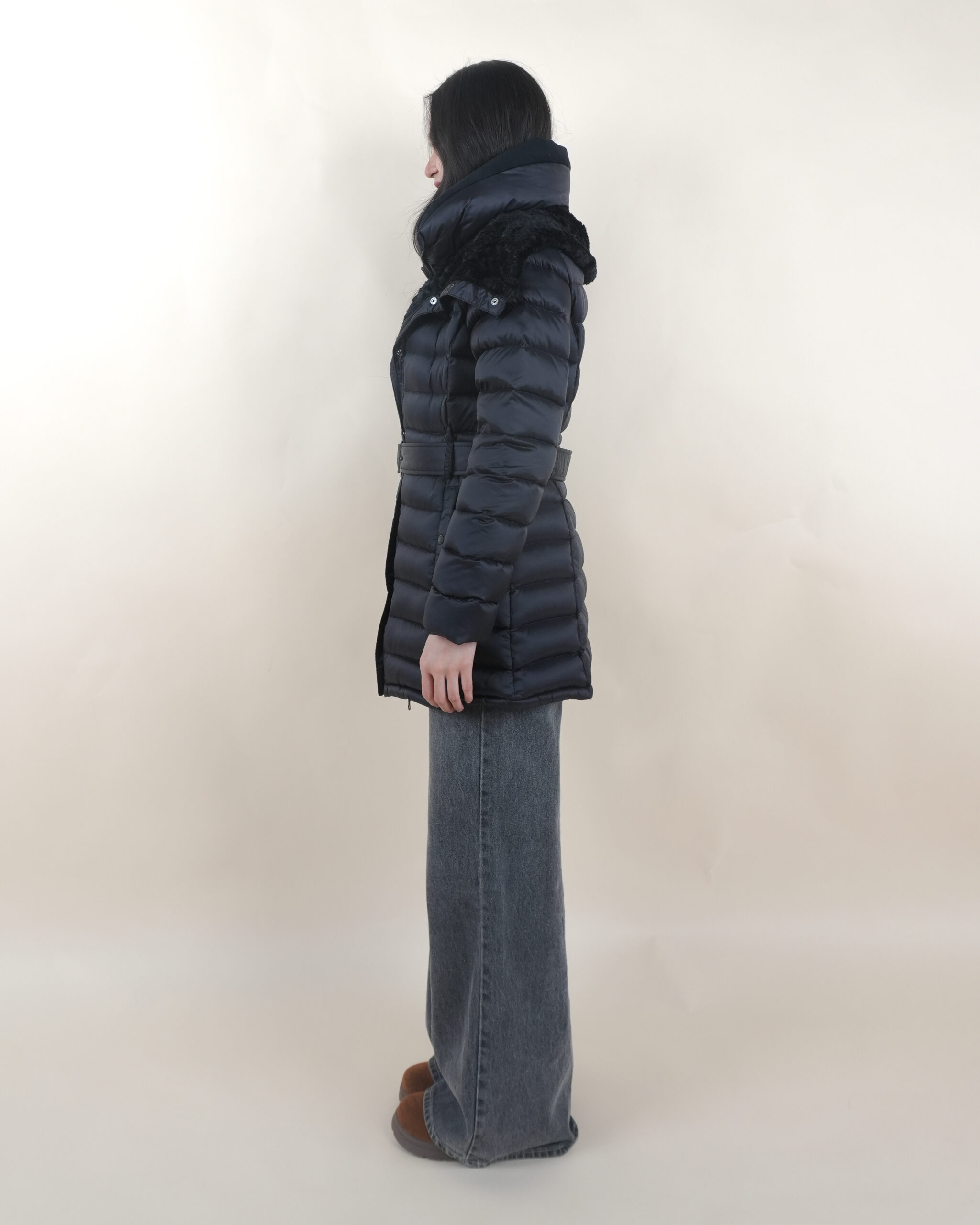 NF เสื้อขนห่านสีดำตัวยาวบุขน+เข็มขัด DOWN 700